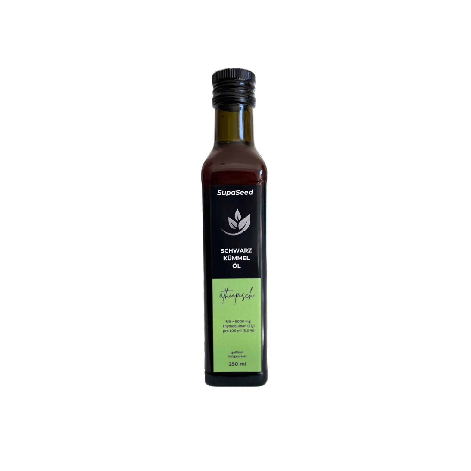 Unser Schwarzkümmelöl aus besten äthiopischen Samen wird in deutscher Handwerksarbeit schonend kaltgepresst. Ein laborgeprüfter Thymoquinon (TQ)-Gehalt von über 5 % und die feine Filtration sorgen für maximale Wirksamkeit bei einem angenehmen Geschmack.